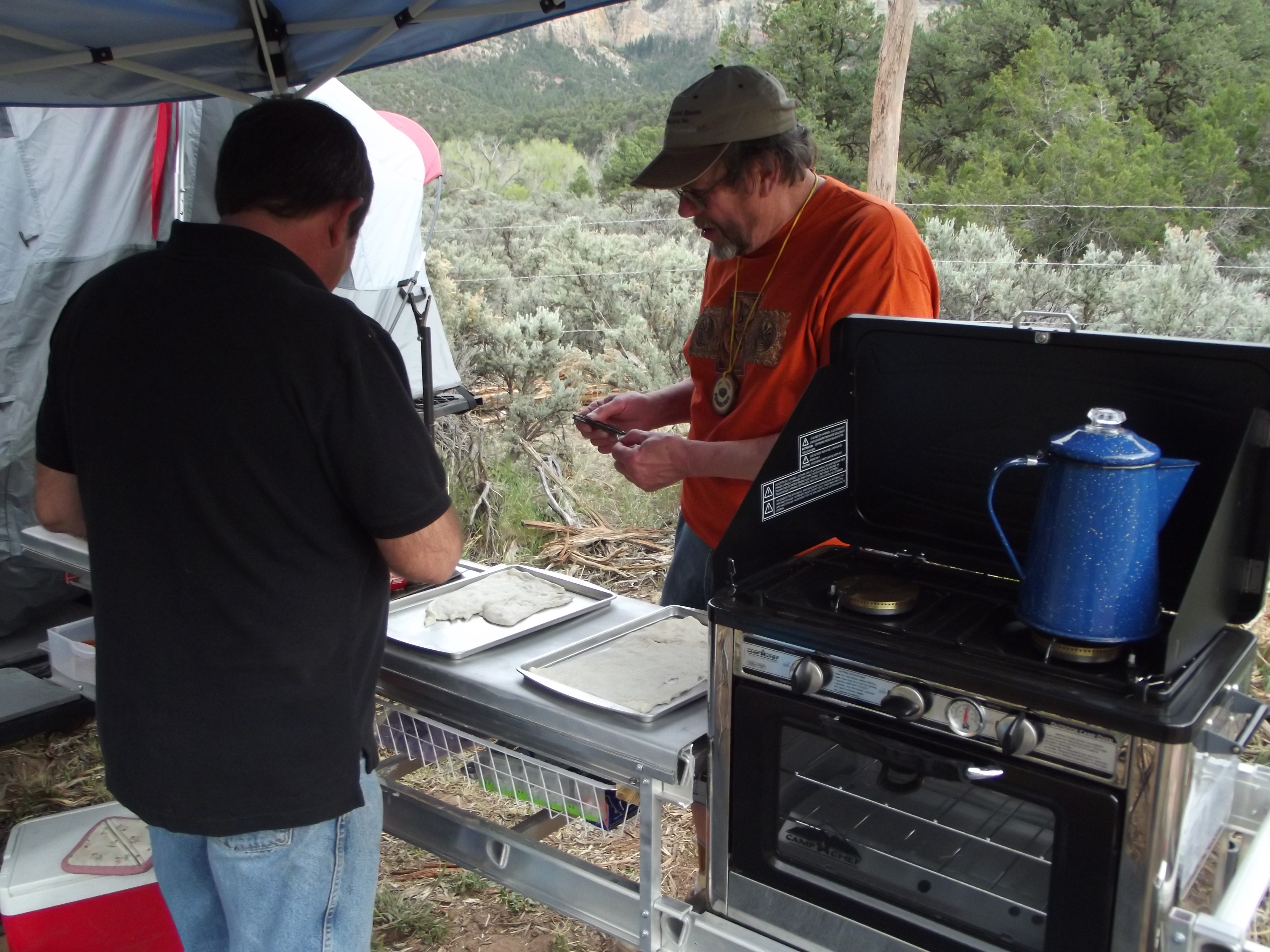 Back at Anasazi Camp, Tim fired up his propane oven to cook some pizza.